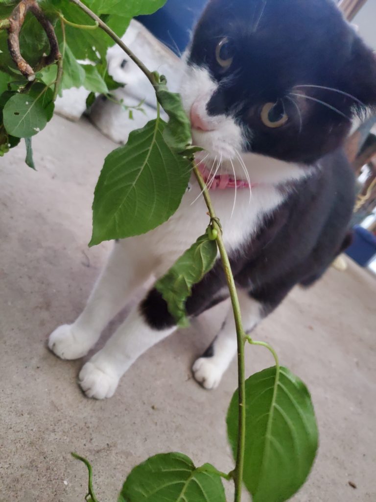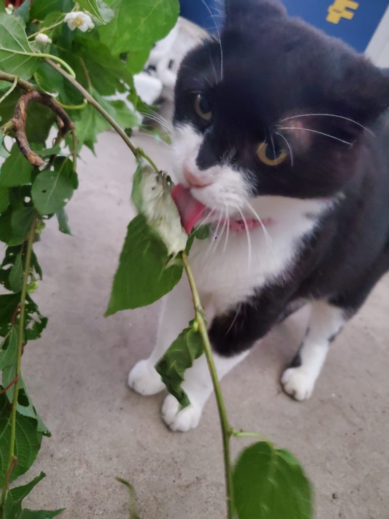 ・いろいろと検索して得た情報ですが、またたびの葉には「ネペタラクトール」という成分が含まれており、この成分が蚊を寄せ付けない効果があるとの研究結果が出てるので、猫ちゃんが葉っぱを頭や体にこすりつける事で蚊の忌避効果を獲得します。かじって葉っぱの汁が付きやすくなると更に忌避効果が上がるとの研究結果も出てるとの事です。なので猫ちゃんが遊んでじゃれてスリスリして蚊の忌避効果も獲得出来てのW効果です‼